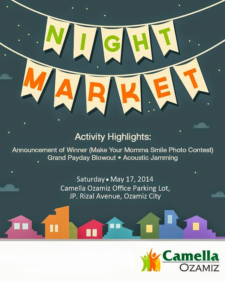 | May 13, 2014 Update: Once upon a night time at Camella Ozamiz. Activity Highlights would include: (a) announcement of winner for the "Make Your Momma Smile Photo Contest); (b) Grand Payday Blowout; (c) Accoustic Jamming. Date: Saturday, May 17, 2014 at Camella Ozamiz Office Parking Lot, JP. Rizal Avenue, Ozamiz City. |